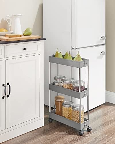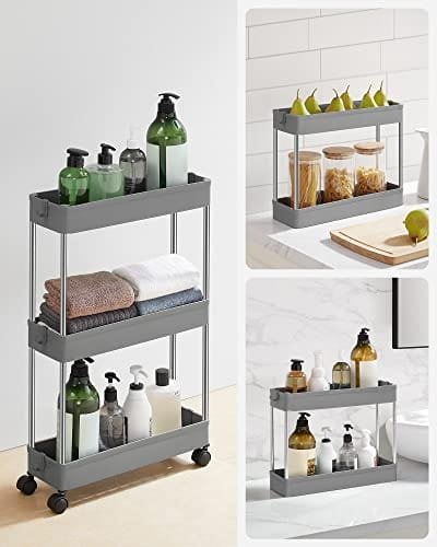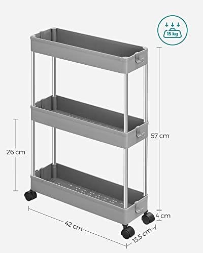 [Utrymmesbesparande] Denna förvaringsvagn, som är 42 x 13,5 x 61 cm stor, får plats i trånga utrymmen i ditt kök, badrum, sovrum eller tvättstuga för att hjälpa dig att få ut det mesta av ditt utrymme