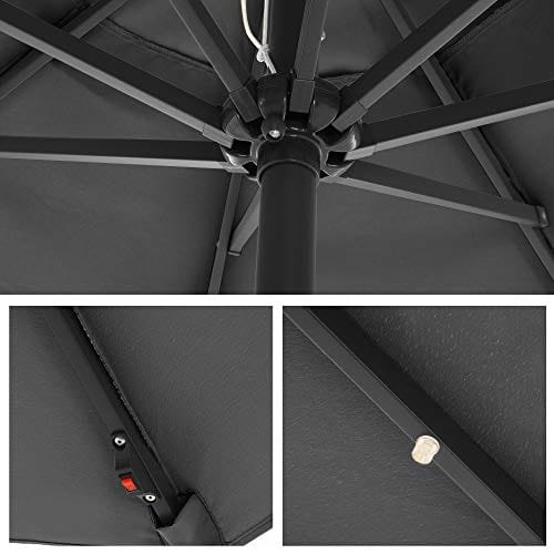 Luta upp den! Med en kvalitetsfog i galvaniserad legering som motstår rost och brott, är det lätt att luta detta upplysta trädgårdsparaply för att blockera solen från alla vinklar, vilket ger dig större skugga för att anpassa dig till tiden på dagen