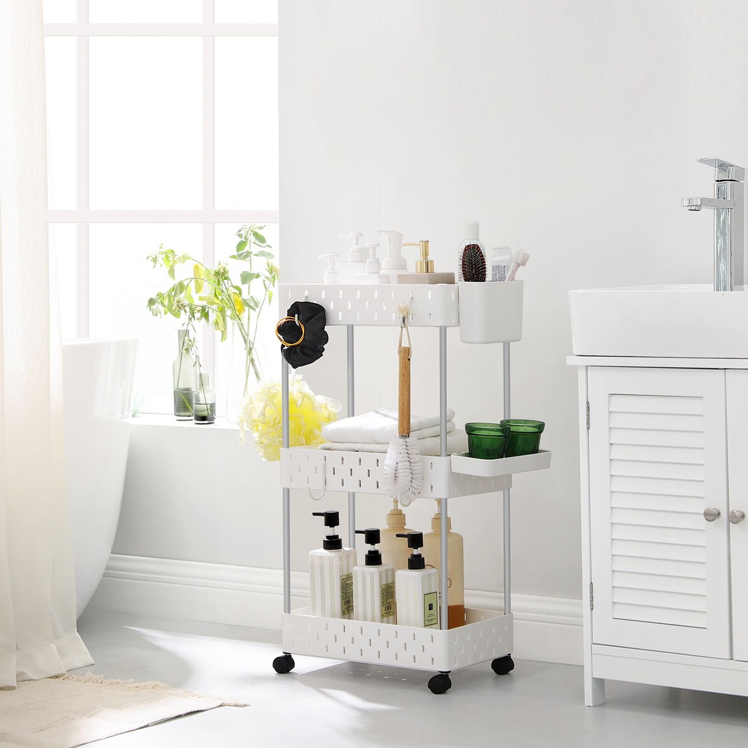 KEEP CHAOS AT BAY: Are there always piles of toiletries or kitchen utensils standing between you and a tidy bathroom or kitchen? Here comes the reinforcement—tame them all on this 3-tier rolling trolley, and restore a tidy home