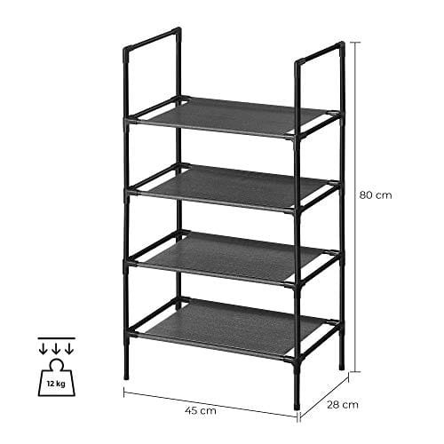 Songmics 4-Tier Shoe Rack, Shoe Storage Organizer med metallram, icke-vävt tyglager, för hall, sovrum, vardagsrum, 45 x 28 x 80 cm, svart LSR004B02