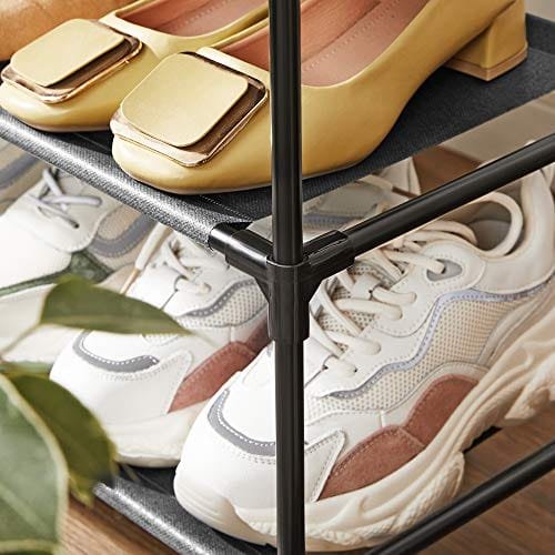 Trio av hållbarhet: robusta metallrör, premium icke-vävt tyg och högkvalitativa plastanslutningar-tack till den perfekta fören av dessa material, denna skoförvaringshylla har en bra bärande kapacitet (upp till 3 kg per hylla)