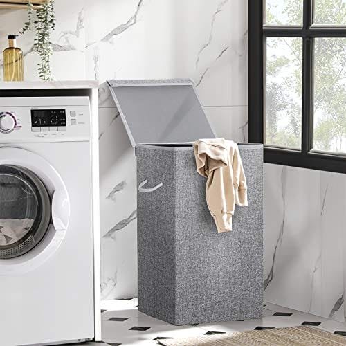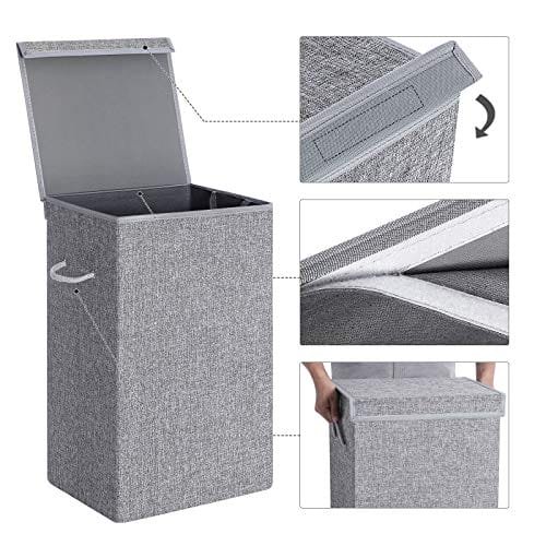 Ett måste-tillägg: storleken 36 x 36 x 66 cm (LXBXH), denna tvättkorg med lock av linnetyg erbjuder 85L för att dölja dina smutsiga kläder och hålla ditt hem i perfekt ordning
