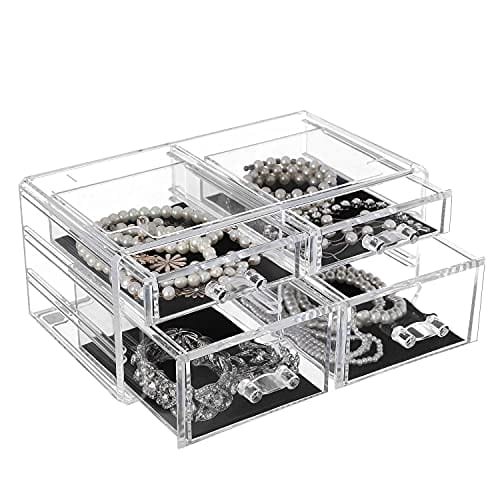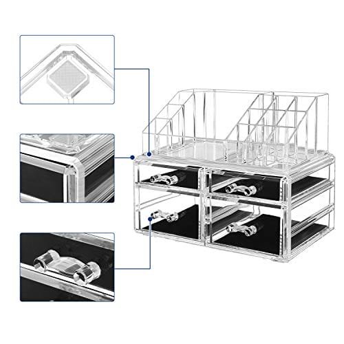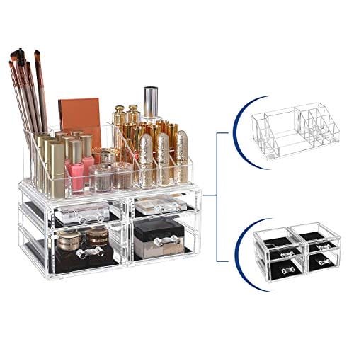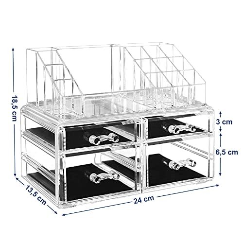 Songmics Acrylic Makeup Organizer Kosmetisk smyckeförvaring med 4 genomskinliga lådor Displayboxar 2-delat set JKA005TP