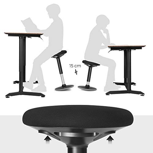 Justera höjden efter behov: tryck bara på knappen under sitsen för att justera ståpallen till önskad höjd (55-70 cm), så att du alltid kan sitta bekvämt, även när du justerar ditt ståbord till en högre nivå