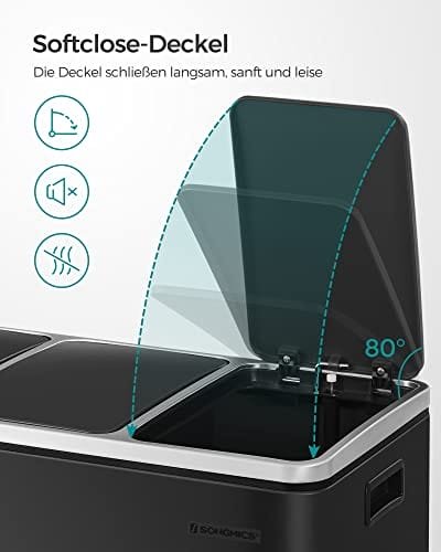 SONGMICS återvinningskärl, 3 x 18 L trippelkök, 3-fack pedalbehållare, svart