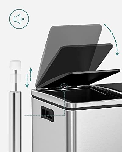 Songmics återvinningskärl, Double Trash Can, 2 x 24l, med 2 fack, silver