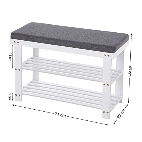 Songmics Bambu Skobänk, 2-lagers skoställ, bänkstol har upp till 150 kg, vit och grå