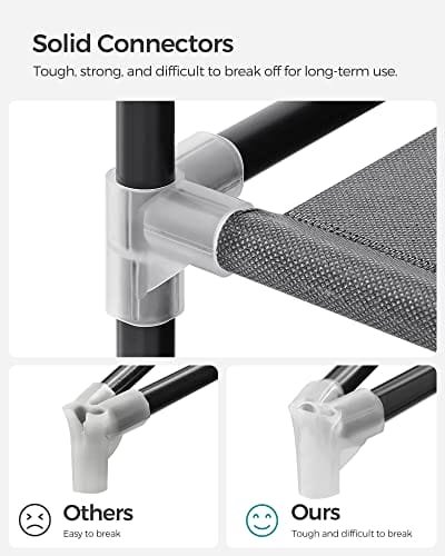 Enkel montering: Inga verktyg krävs. Följ bara instruktionerna och sätt in rören i plastanslutningarna, sedan kan du avsluta montering av denna klädförvaringsarrangör utan problem. Dessutom tillhandahålls reservdelar för ersättning