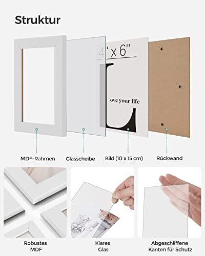Songmics Bildramar 3 collage fotoramar för 5 ”x7” foton, MDF, Glass Front Vit