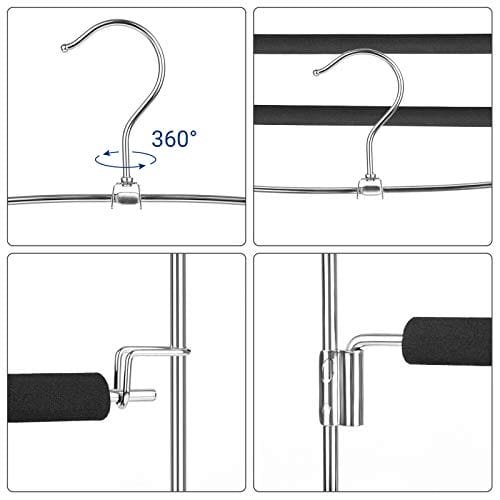 Specifikationer:- Färg: Silver, Svart Material: Järntråd, Eva-skum Storlek på en hängare: 38 x 0,5 x 37 cm (LXBXH)- Vikt på en hängare: 413 G-Max. Statisk lastkapacitet för en enda hängare: 5 kg Förpackningens innehåll:- 3 x byxhängare
