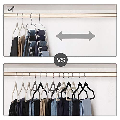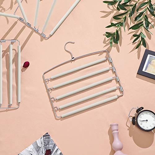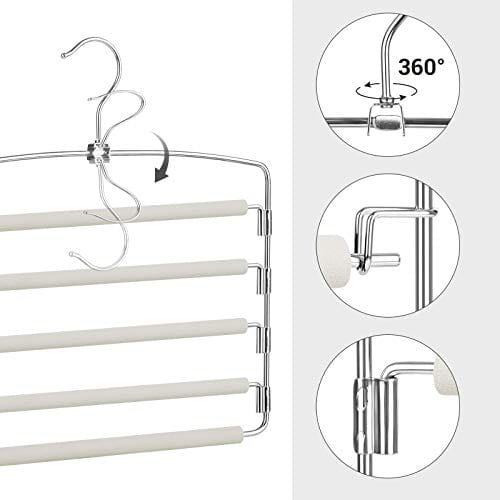 För mer utrymme i garderoben: Var och en av de 3 galgarna har 5 byxstänger. Här kan du hänga inte bara byxor utan även slipsar, skärp, halsdukar eller till och med handdukar i badrummet snyggt under varandra