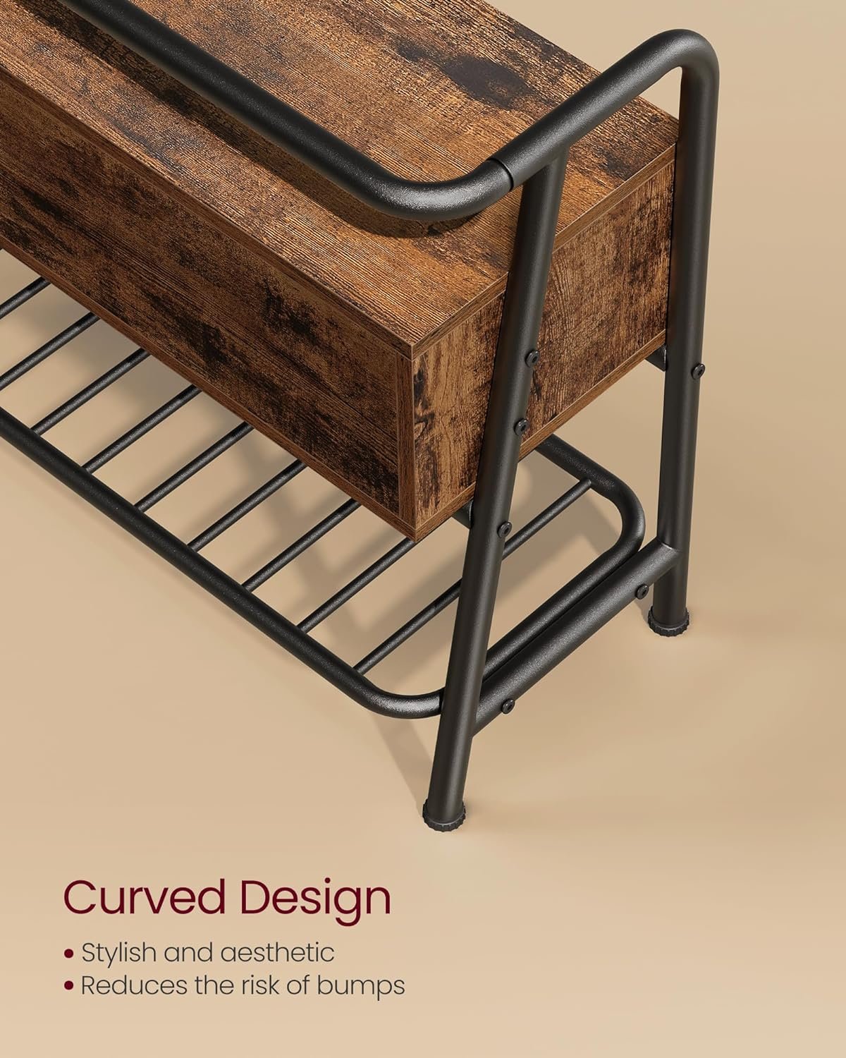 [Sturdy and Durable] Made from particleboard and steel, this shoe rack can withstand up to 136 kg, ensuring long-lasting durability. Sit back and change shoes in comfort