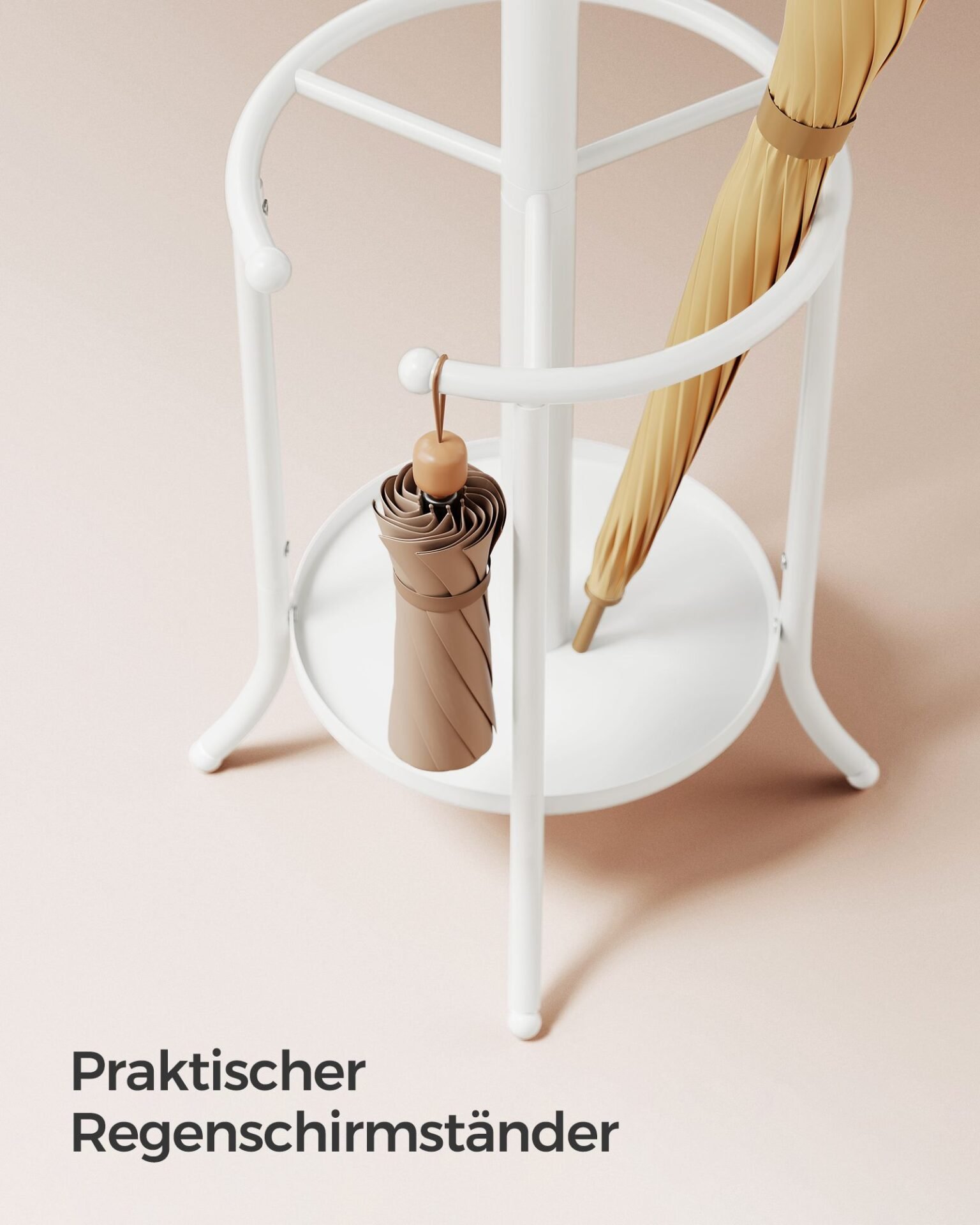 [Practical Umbrella Stand] This coat rack includes an umbrella stand with a cut-out section suitable for both long and folding umbrellas, and a drip tray designed to protect your floors from rainwater