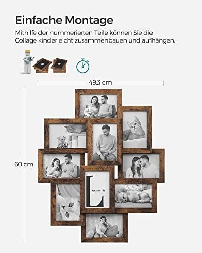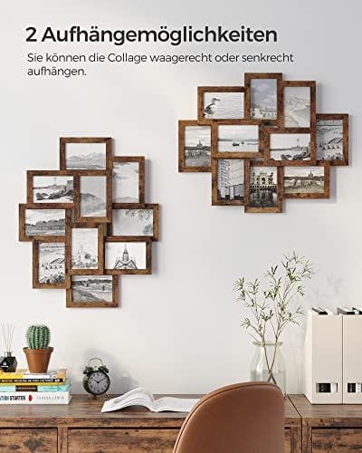 Rustik-men-chic design: Med en rustik-men-chic layout kan detta fotoramkollage hängas vertikalt eller horisontellt; Perfekt för att dekorera ditt vardagsrum, sovrum, hall eller kontor