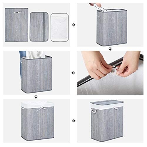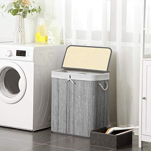 Vad du får: En tvättkorg i två sektioner av bambu som hjälper dig att sortera mörka kläder från ljusa medan du kastar tvätt