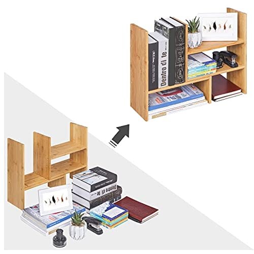 Fortfarande bundna? : Är du osäker på vilken typ av hylla som är bäst för ditt skrivbord? En liten med 2 plan, en längre med 3 hyllor eller en platsbesparande hörnhylla? Nu behöver du inte välja längre! Få alla dessa varianter på en hylla med denna anpassningsbara och utbyggbara skrivbordsarrangör från Songmics.