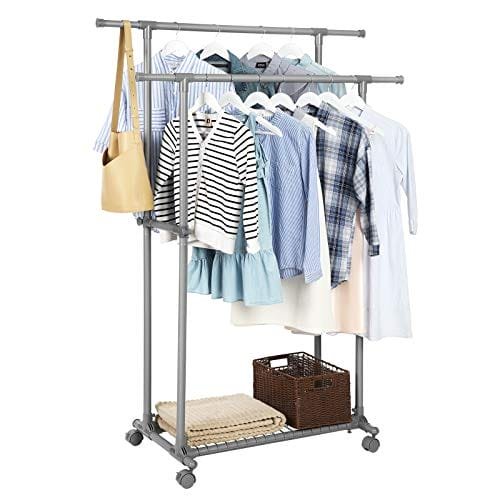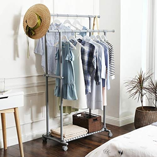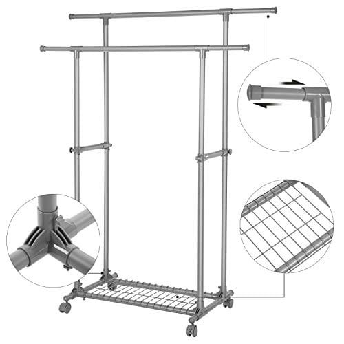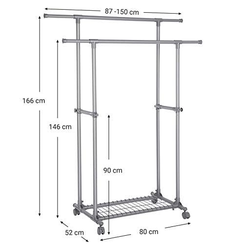 Songmics Double Klädstång, utdragbart plaggstativ, rullande klädstativ, grå