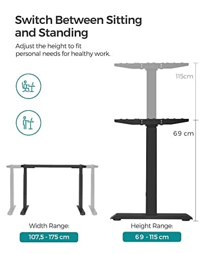 HÖJJJUSTERABAR: Denna bordsram är justerbar mellan 69 och 115 cm, lämplig för personer med höjden 1,1 – 1,95 m, sittande eller stående? Hitta en idealisk hållning för att avlasta din kropp och lära dig eller arbeta effektivt