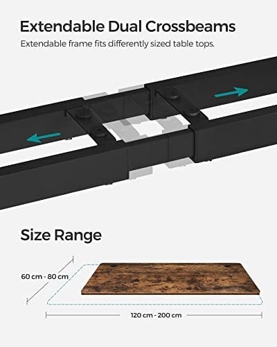 Justerbar bordsram: denna robusta bordsram i stål är justerbar i längd mellan 107,5 och 175 cm och passar därför en mängd olika bordsytor (120-200 cm lång, 60-80 cm bred)