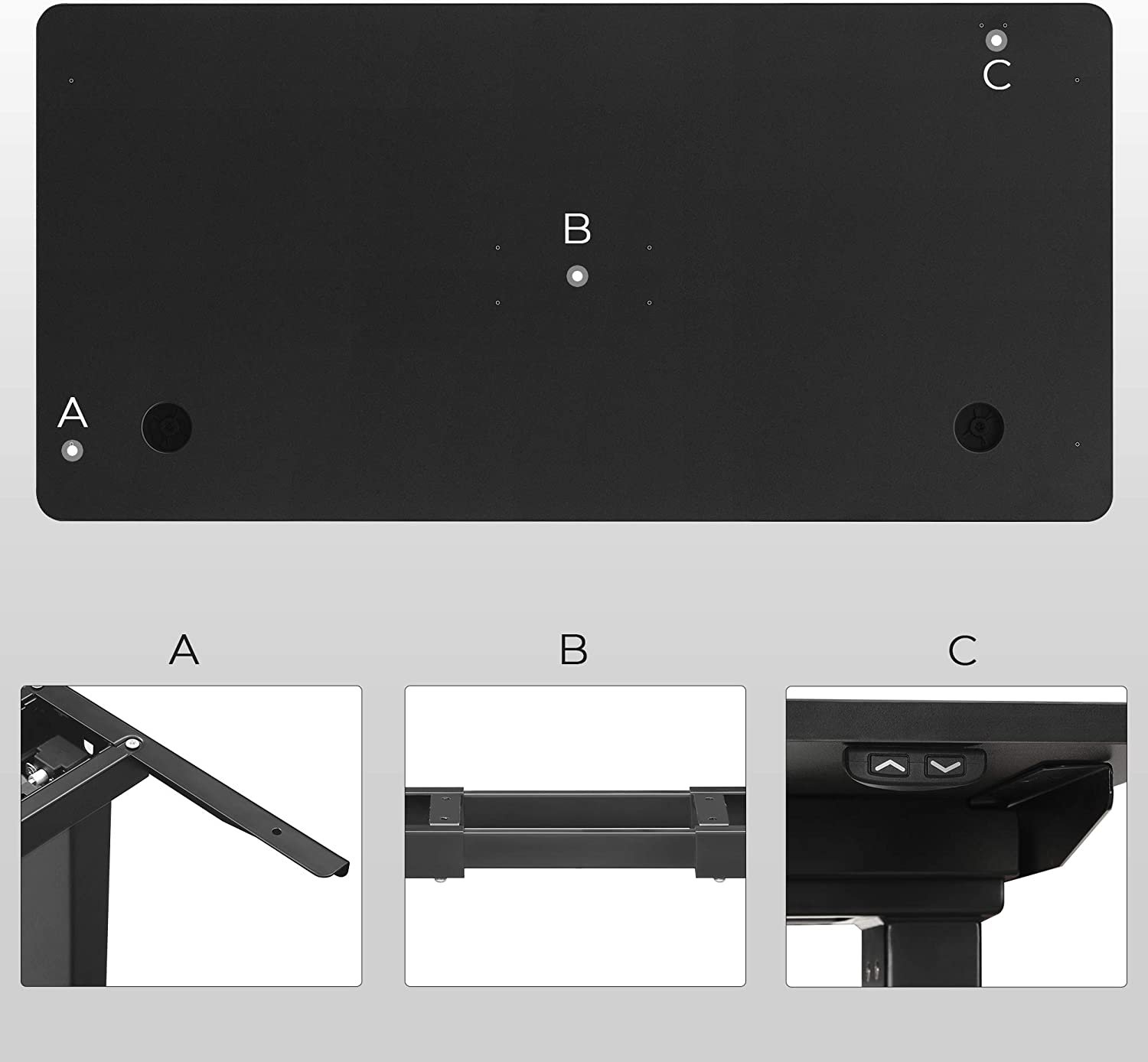 Practical details: the pre-drilled holes are adapted to the mounting on our electric table stand from Songmics. Drilling may need to be done by yourself if you mount the table top on a frame of another brand