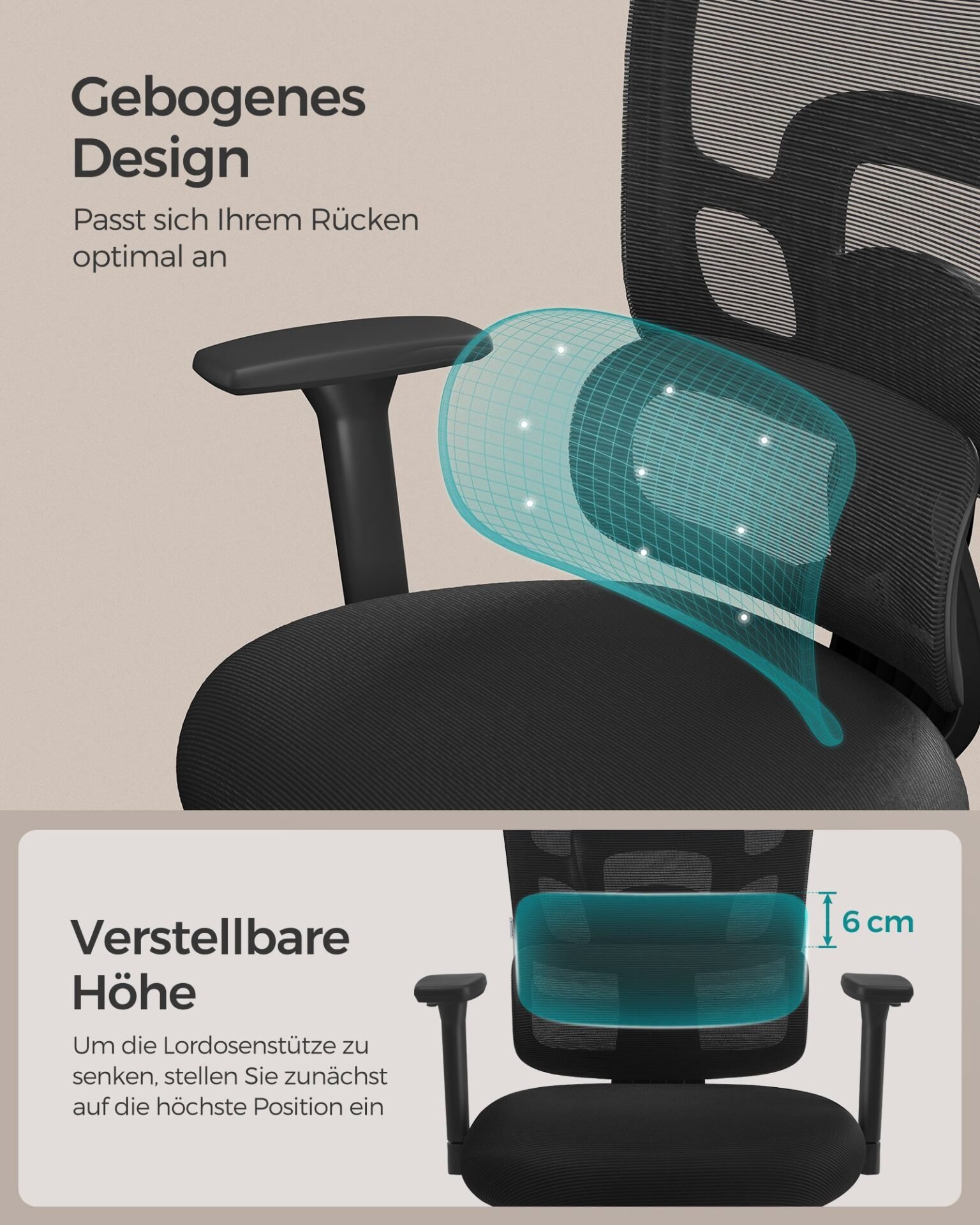 [ERGONOMIC SUPPORT]The lumbar support can be adjusted up or down by 6 cm to suit your seating preferences. The backrest can be adjusted by 90°, 115° and 135° to perfectly adapt to your body