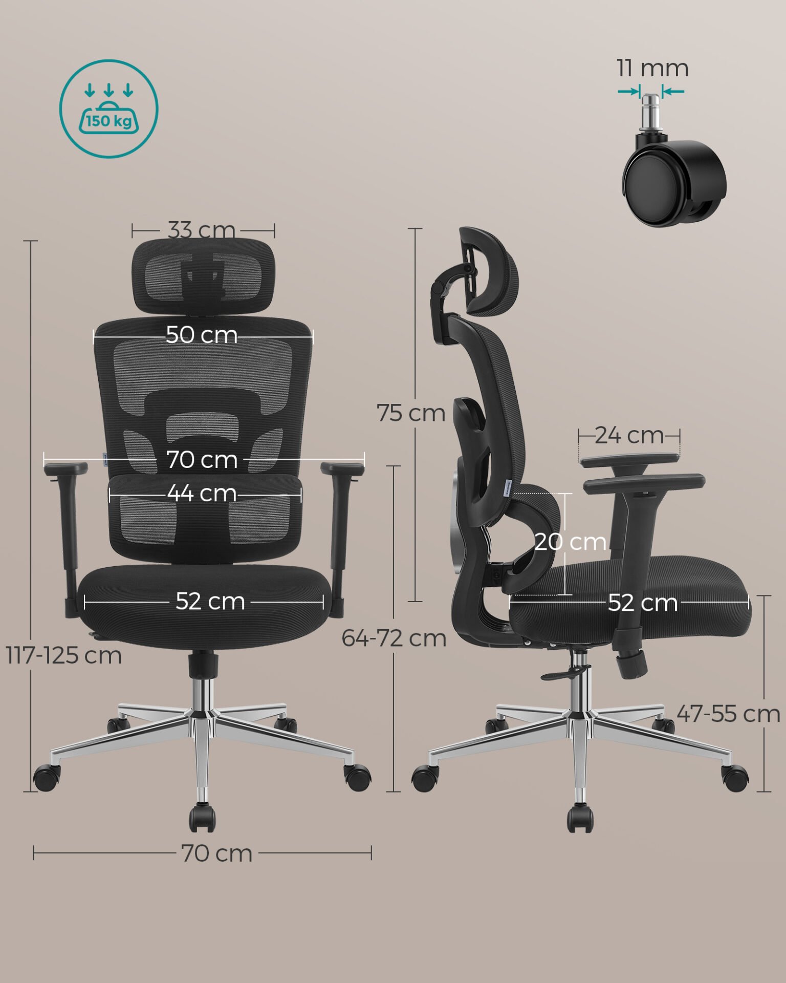 Max. static load capacity: 150 kg