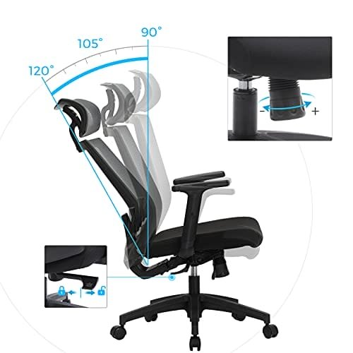 Handjusterbart ryggstöd: justerar ryggstödet till 90°, 105° eller 120°. Lås den vinkel du gillar och slappna av med tillfredsställelse. Tack vare det flexibla ryggstödet kan du enkelt växla mellan arbets- och avkopplingsläge