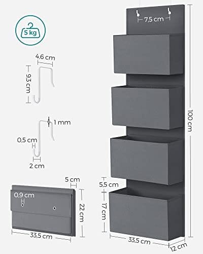 Songmics förvaring utanför dörren med 4 fickor, förvaringsorganisator i vägghöjd, praktisk och rymlig, för kontorsrum för barnrum, 33,5 x 12 x 100 cm, grå RDH04G