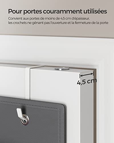 Häng den utan bekymmer: De uppgraderade krokarna är lämpliga för vanliga dörrar med en maximal tjocklek på 4,5 cm; Dessutom har varje krok en omvänd ände på baksidan så att den inte skadar dörren även när den är fulladdad