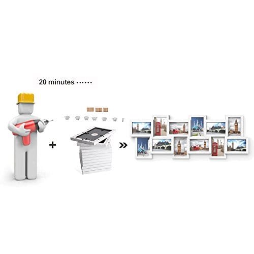 Songmics fotoram collage för 12 foton i 4 ”x 6” Bildram vägg monterad, vit träkorn