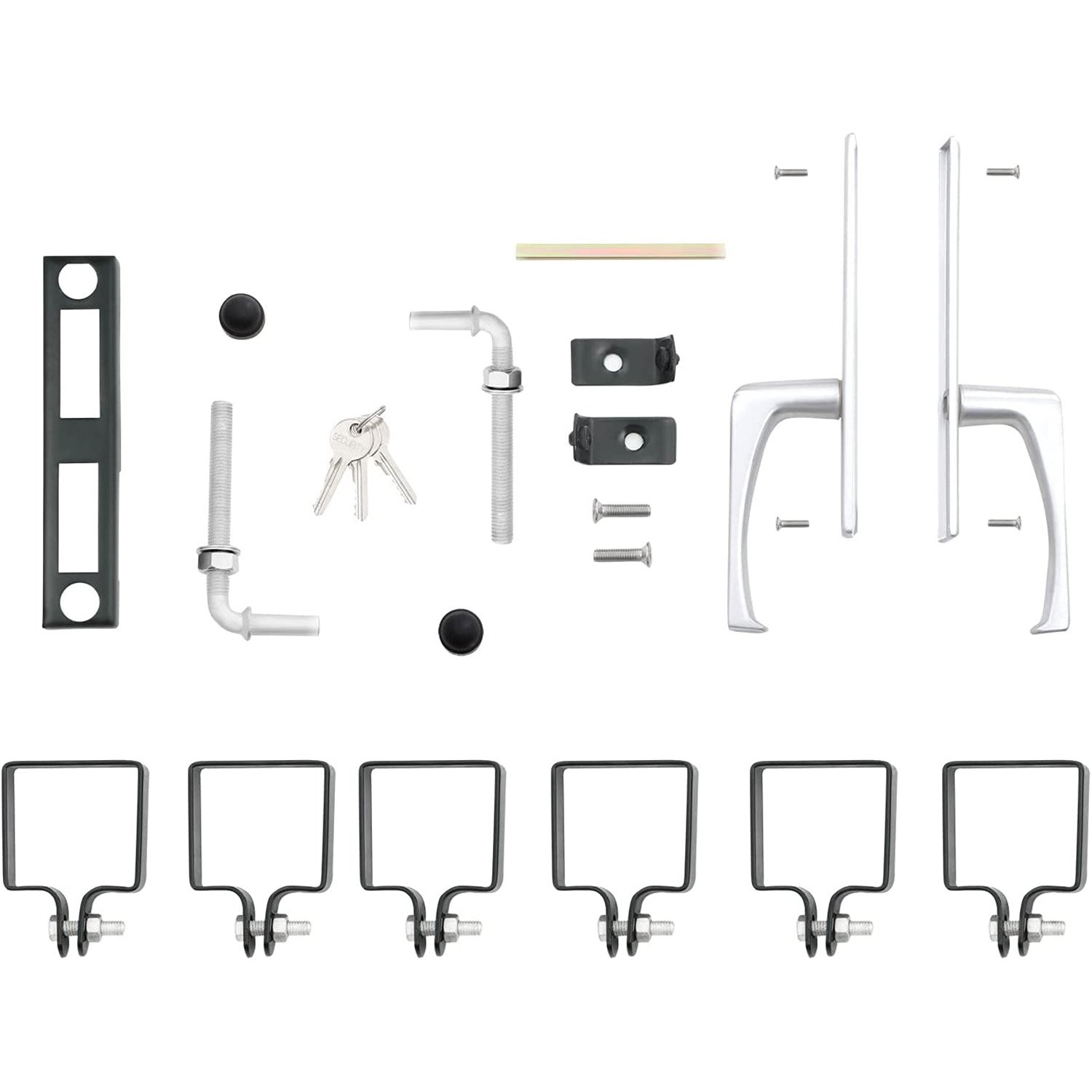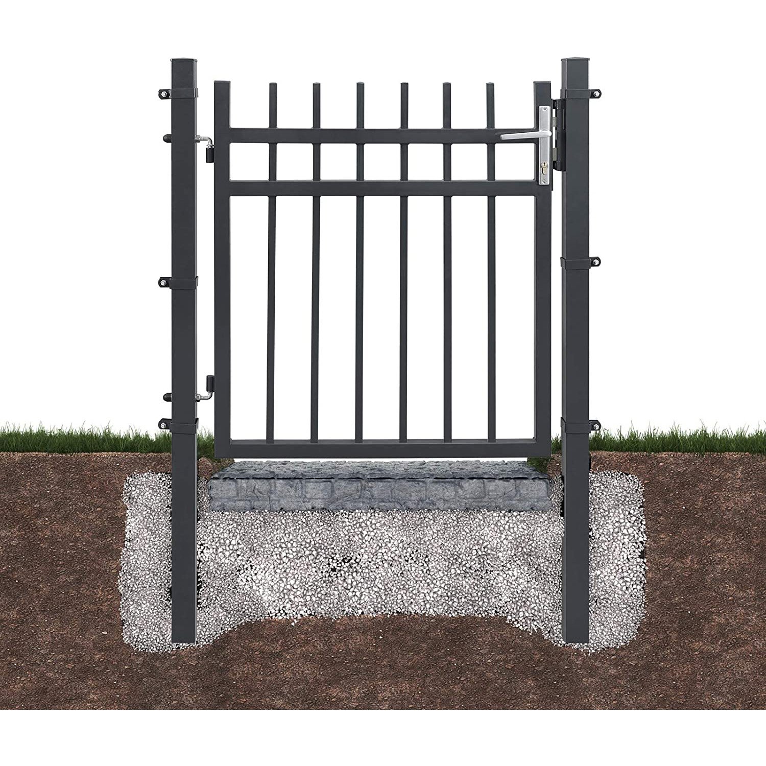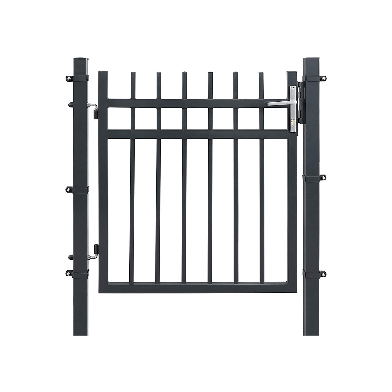 Specifications:- Colour: Grey- Material: Powder-Coated Galvanised Iron, Aluminium Handle, Copper Lock – Product Size: 106 x 150 cm (L x H)- Door Size: 87 x 100 cm (L x H)- Height of Each Post: 150 cm – Product Weight: 21.1 kg Package Contents:Shipped in 2 Packages:Package 1:- 1 x Door- 1 x Bag with Mounting Tools- 1 x Instructions (EN, IT, DE, FR, ES)Package 2:- 2 x Post