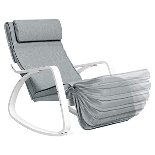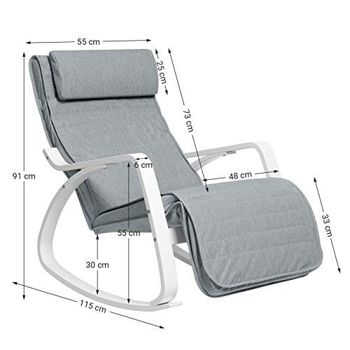 gungstolSongmics gungstol, björkträ avkopplande stol fotstöd, maximal belastning 150 kg, ljusgrå