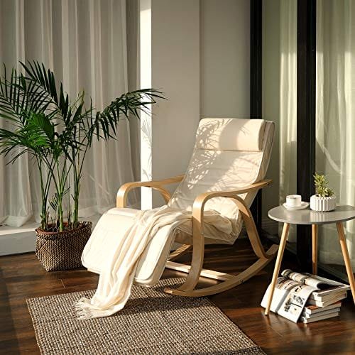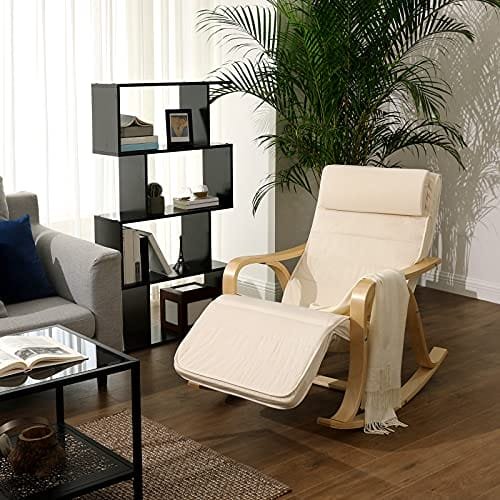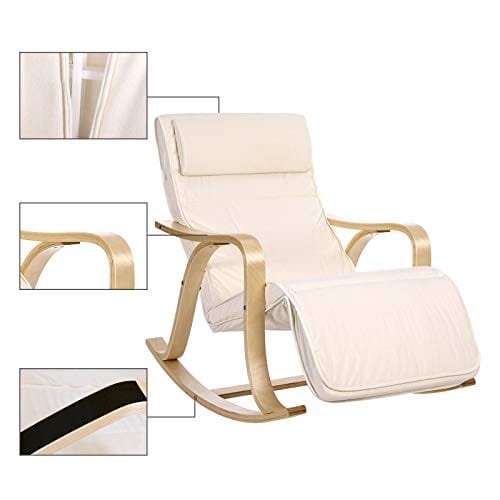 Precis som på mjuka vågor: Sitt på den här böjda gungstolen, justera fotstödet till önskad höjd (5-vägs justerbart), blunda och slappna av i kropp och själ när du svänger fram och tillbaka.