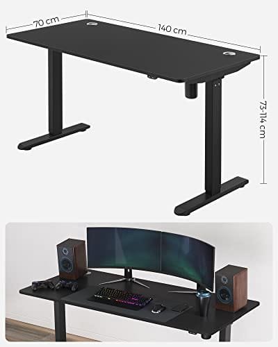 Höjdjusterbar Elektrisk Skrivbord, 70 X 140 X (73-114) Cm, Bordsram, Skrivbord, med Bordsskiva, Oändligt Justerbart, Stål, Svart