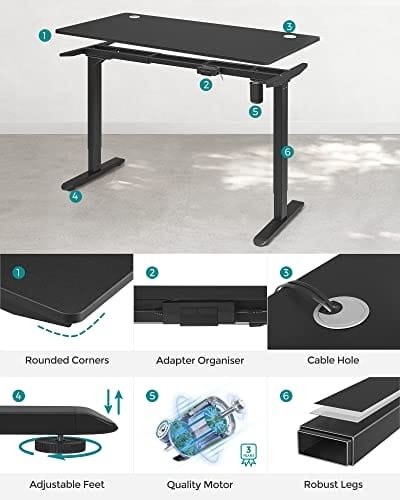 Vad du får: Ett höjdjusterbart skrivbord med låg ljudnivå (50dB) och tydliga instruktioner för snabbmontering, föremålet finns i 2 paket