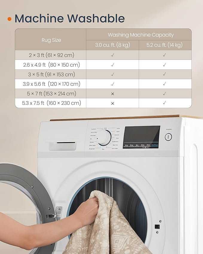 【DURABLE AND MACHINE WASHABLE】Crafted from premium materials, this machine-washable area rug can withstand extended use. Remarkably, it retains its soft texture even after multiple washes, providing consistent comfort over time
