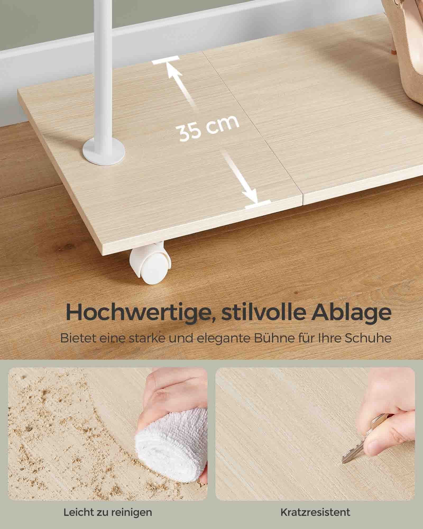 [Strong Construction] The sturdy steel coat rack can hold up to 30 kg, while the chipboard shelf can hold up to 20 kg. You can safely hang your winter coats and store heavy boots