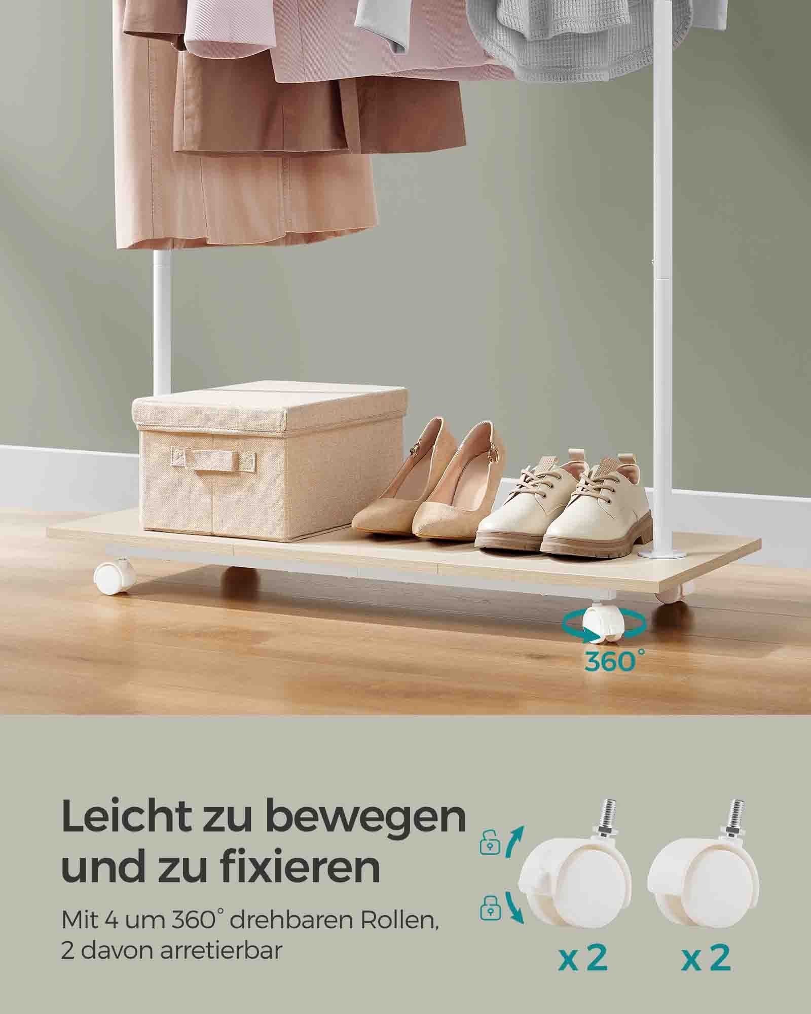 [Easy to move] This clothes rail has 4 360° rotating wheels, 2 of which are equipped with brakes so you can easily move it from the bedroom to the dressing room, or to where you need it
