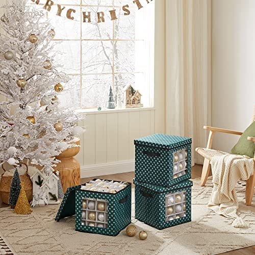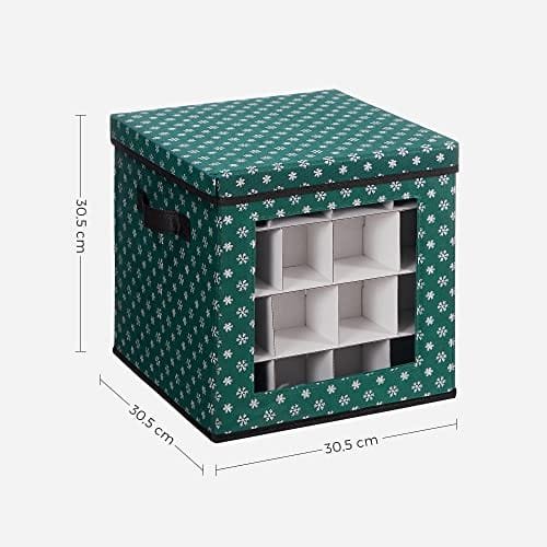Omgiven av julglädje: Julmusik spelas i vardagsrummet, häng kulorna på ditt gran från en påse, men vänta! En väska? Dina dyrbara dekorationer förtjänar en magisk plats från denna uppsättning med 3 gröna förvaringslådor med fascinerande snöflingor