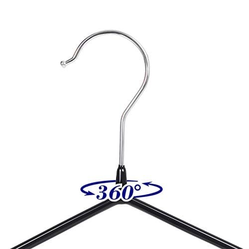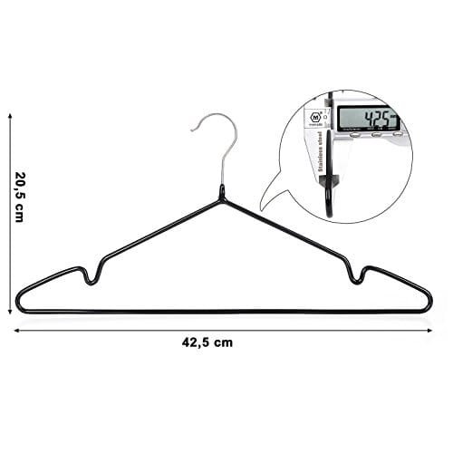 Specifikationer: – Färg: Svart Material: Metalltråd med PVC-beläggning, förkromad Krokstorlek för varje hängare: 42,5 x 0,4 x 20,5 cm (LXBXH) – Totalvikt: 1,35 kg – Max. Statisk lastkapacitet för varje hängare: 3 kg Förpackningens innehåll: – 20 x klädhängare