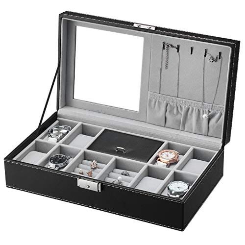 Rationell layout – superpraktisk och platsbesparande. Med 8 klocköppningar, 2 ringgits, 1 musselsmycke, vilket ger ett stort förvaringsutrymme, så att alla klockor kan hållas i ordning