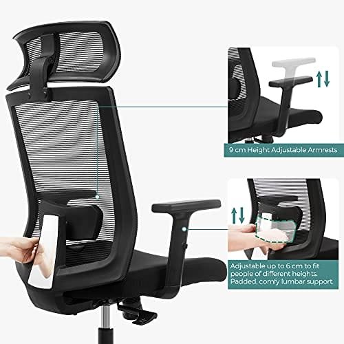 SONGMICS Kontorsstol, Skrivbordsstol, Ergonomisk datorstol, 360° snurrstol, Svart