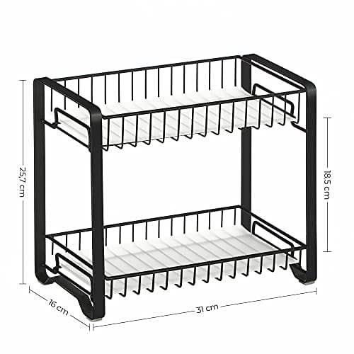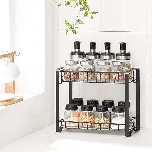 Songmics Kryddställ, 2-vånings metall köksbänkshylla, Spice Organizer, svart