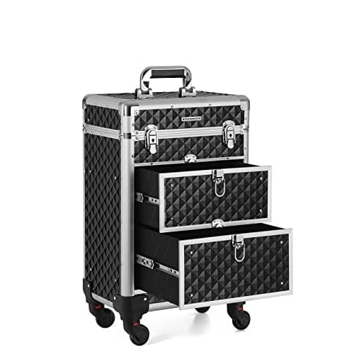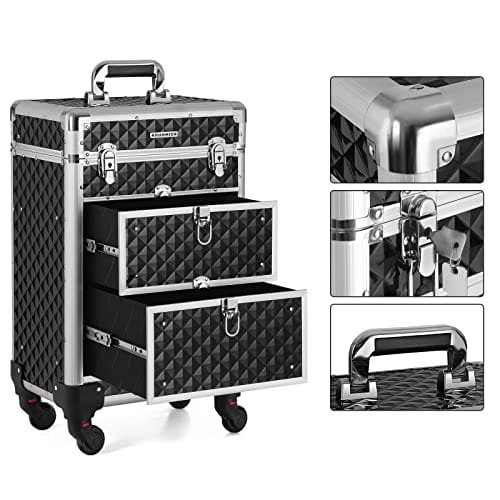 SONGMICS Låsbart sminkfodral, Rolling Cosmetics Beauty Trolley Box, Svart