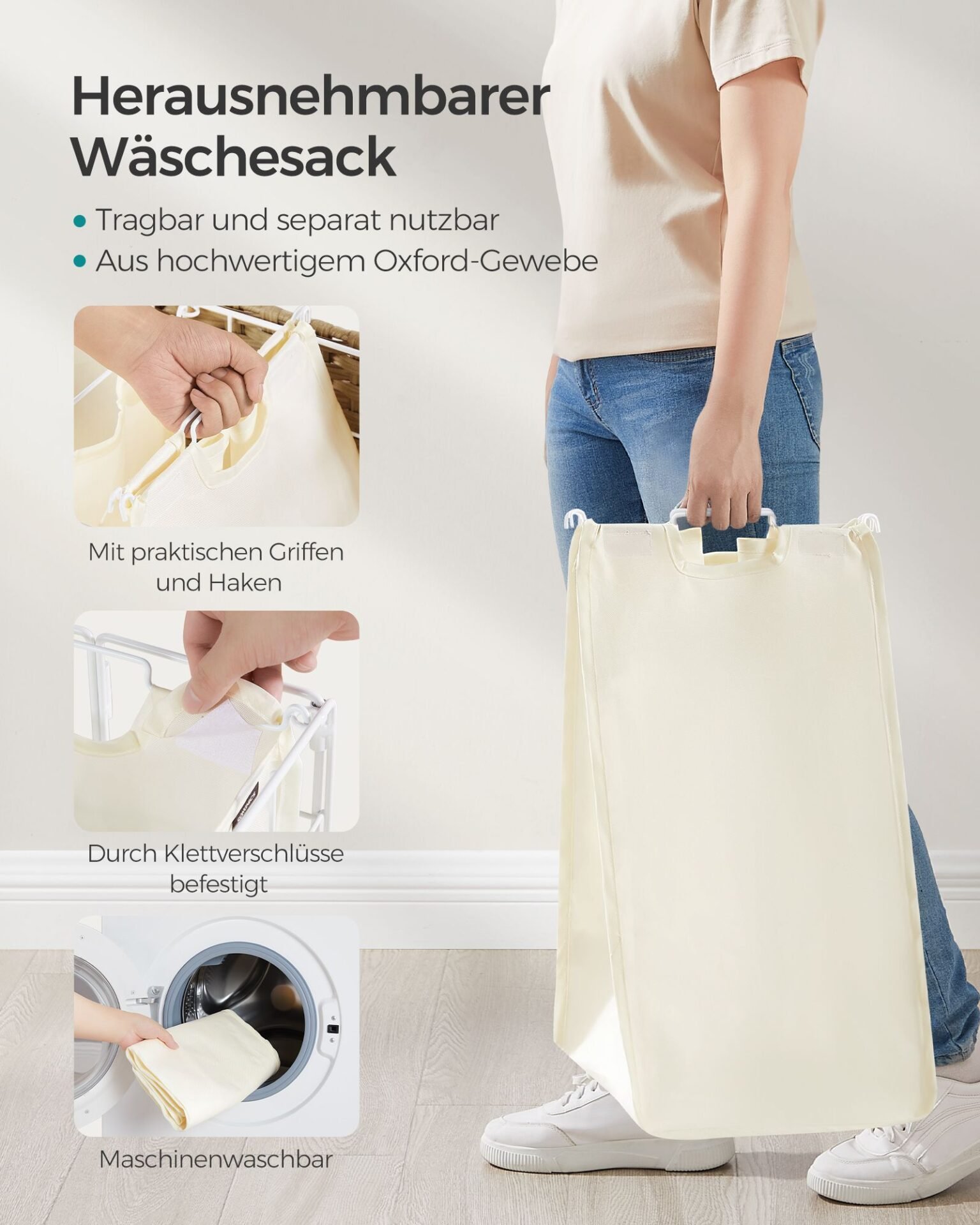 SONGMICS Laundry Basket 110 L, Laundry Bag with Wheels, Laundry Bag Removable, 2 Inner Pockets, Laundry Trolley with Lid, 57 x 33 x 65 cm, for Laundry Room, Natural Beige-Cream White LCB211N01SONGMICS Laundry Basket 110 L, Laundry Bag with Wheels, Laundry Bag Removable, 2 Inner Pockets, Laundry Trolley with Lid, 57 x 33 x 65 cm, for Laundry Room, Natural Beige-Cream White LCB211N01
