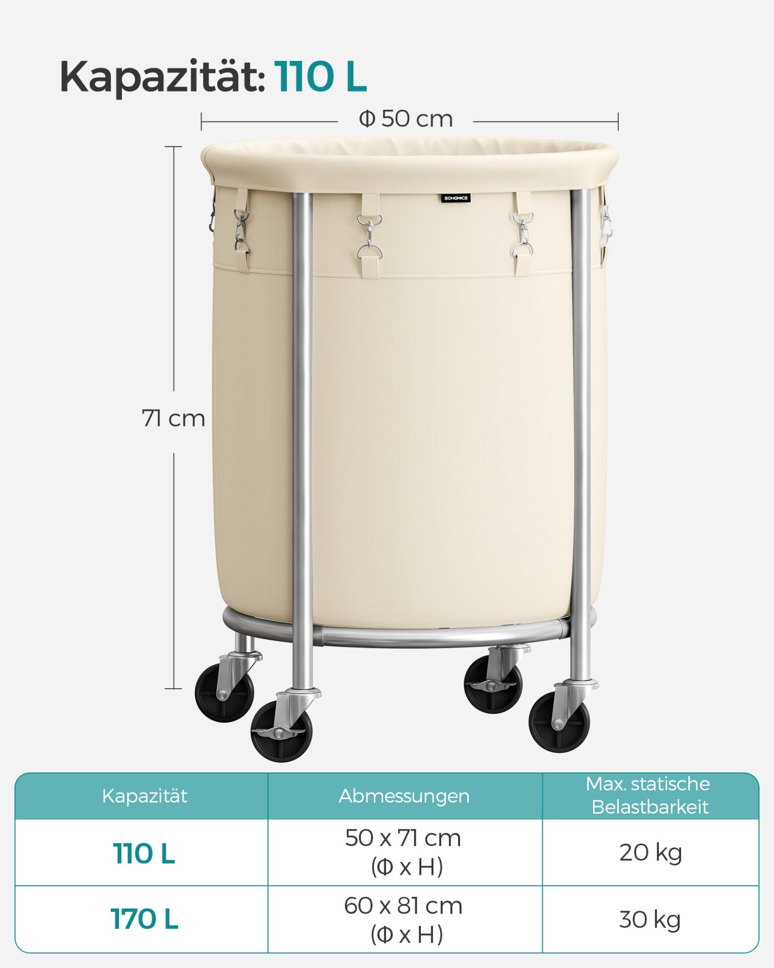 [Spacious Laundry Basket] Measuring 50 x 71 cm (Dia. x H), this laundry basket on wheels provides 110L of storage space, about a week’s worth of your family’s laundry