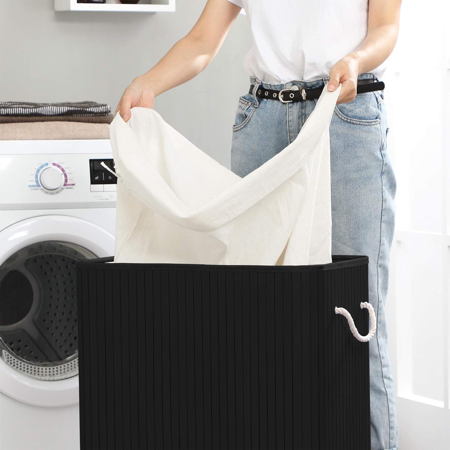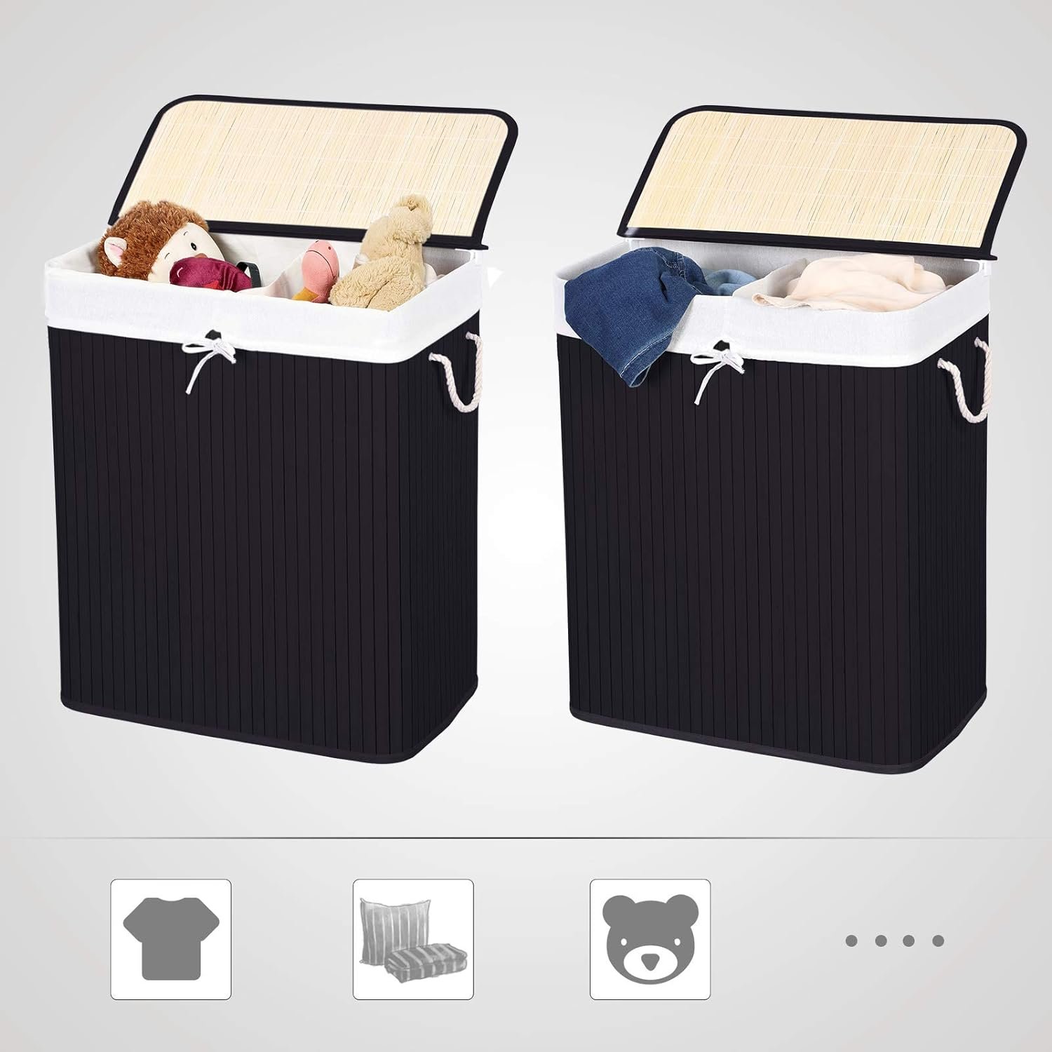 [What you get] A SONGMICS bamboo laundry basket with 2 compartments to help you sort clothes by colors