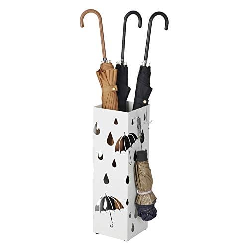 Paraply StandSongmics Metal Paraply Stand, fyrkantig paraplyhållare med droppfack och 4 krokar, vit