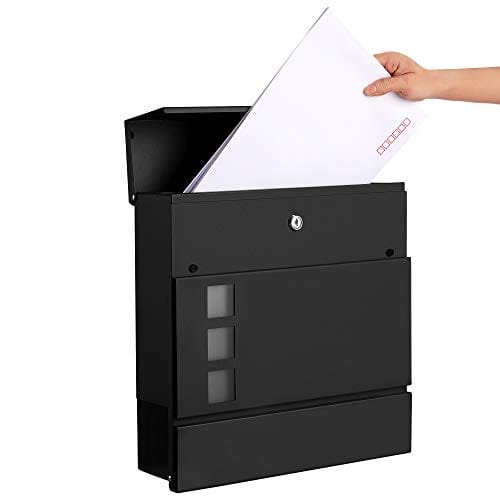 SONGMICS Modern brevlåda, låsbar väggmonterad postbrevlåda, svart