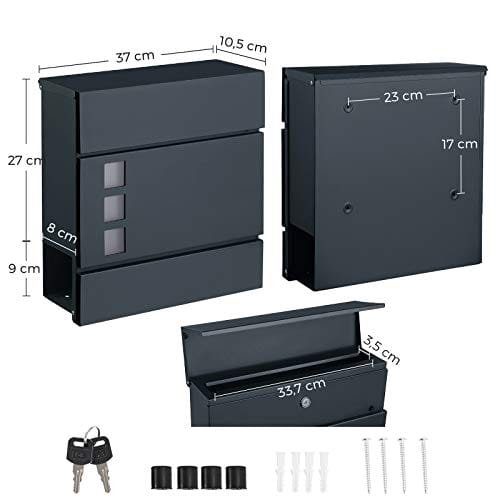 Songmics Modern Mailbox, låsbar väggmonterad postbrev, lätt att installera, Anthracite Gray